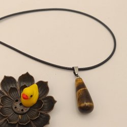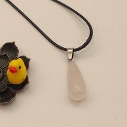 Ett vackert halsband med en bergskristall och en blå keramisk pärla. Halsbandet har ett svart band , längd 66 cm