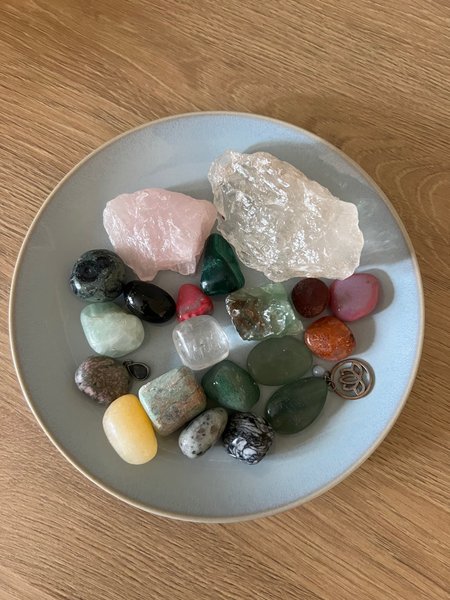 Kristaller. Nypris cirka 2000kr. Renats med salvia. Några av stenarna ligger på jobbet och är inte med på bild.