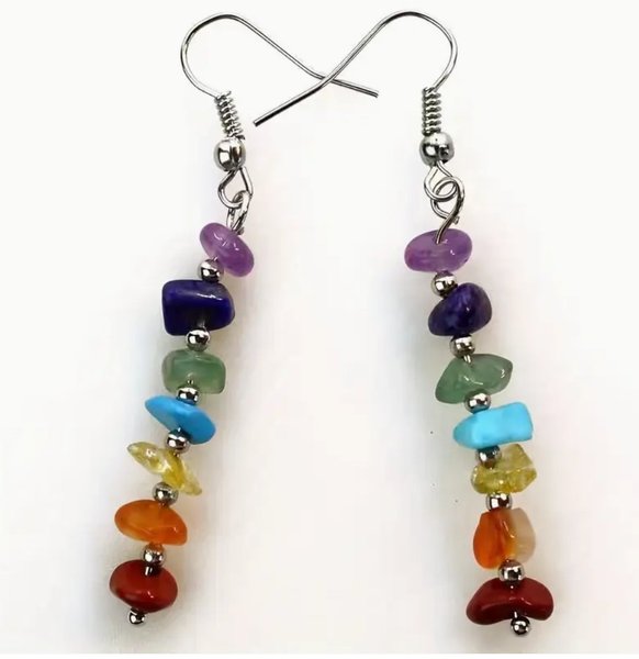 Ett par örhängen med chakrastenar i olika färger. Perfekt för den som gillar färg och andlighet.