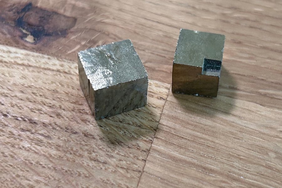 Kuber av pyrit. Största ca 1 cm.