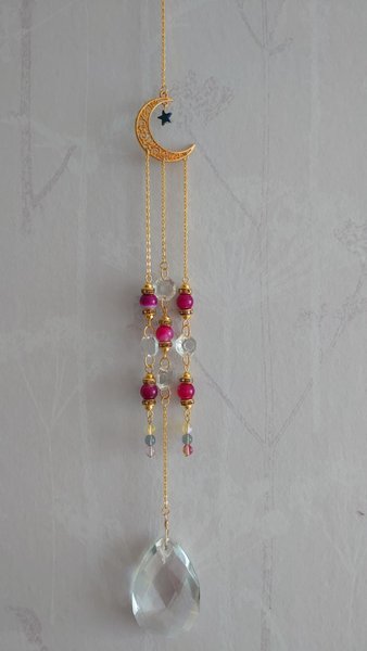En härligt fin handgjord av mig solfångare med prismor från gamla kristallkronor som jag köper in på loppisar.