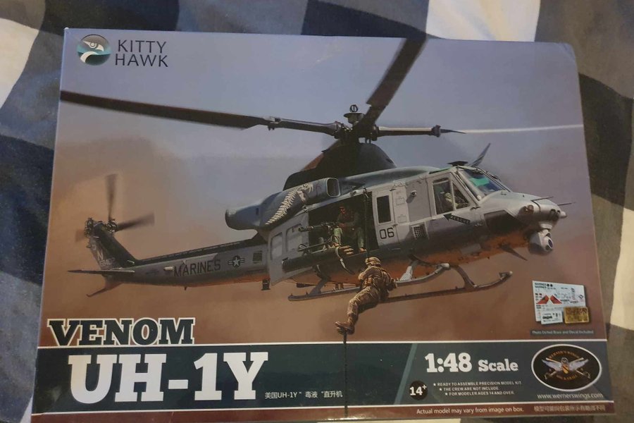 Modellkit av en Venom UH-1Y i skala 1:48. Perfekt för modellbyggare som vill bygga en detaljerad modell av denna ikoniska helikopter.