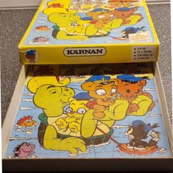 Ett träpussel med Bamse motiv.
