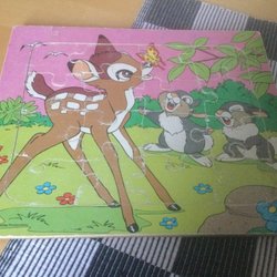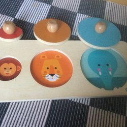 Ett träpussel för de allra minsta. Pusslet är välanvänd av många barnbarn. Fattas en pigg på huvudet. Pusslet väger ca 380 g utan emballage. Samfraktar gärna och skickar paket 1-2 ggr/vecka.