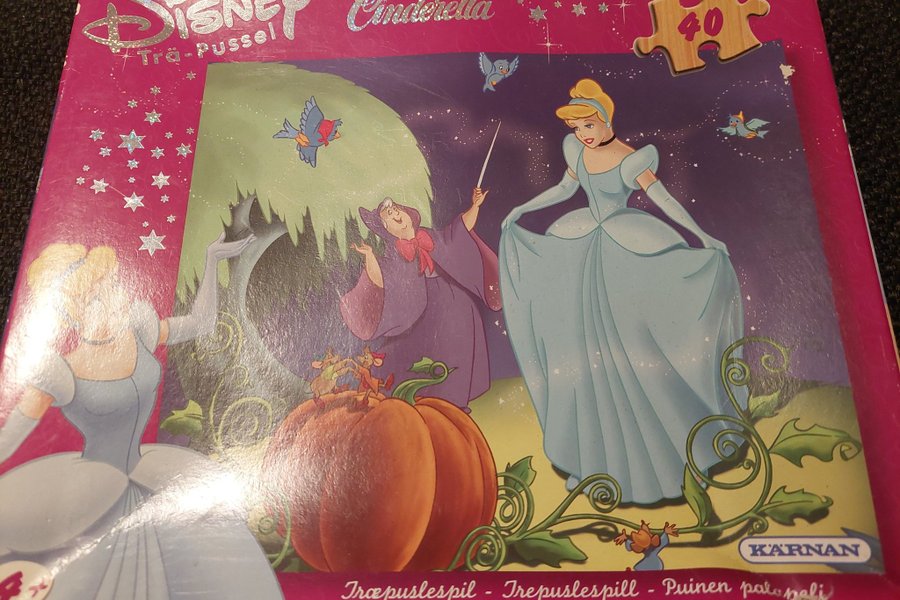 Träpussel med Disney-motiv från Kärnan. Pusslet har 40 bitar och föreställer karaktärer från Cinderella.