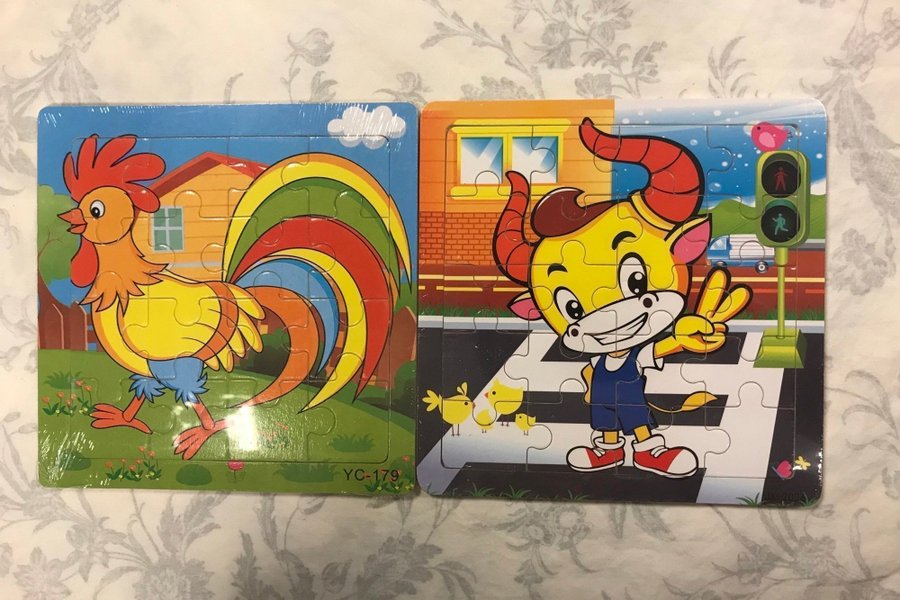 2ST Pedagogisk Barn Trä Pussel I 16 bitar