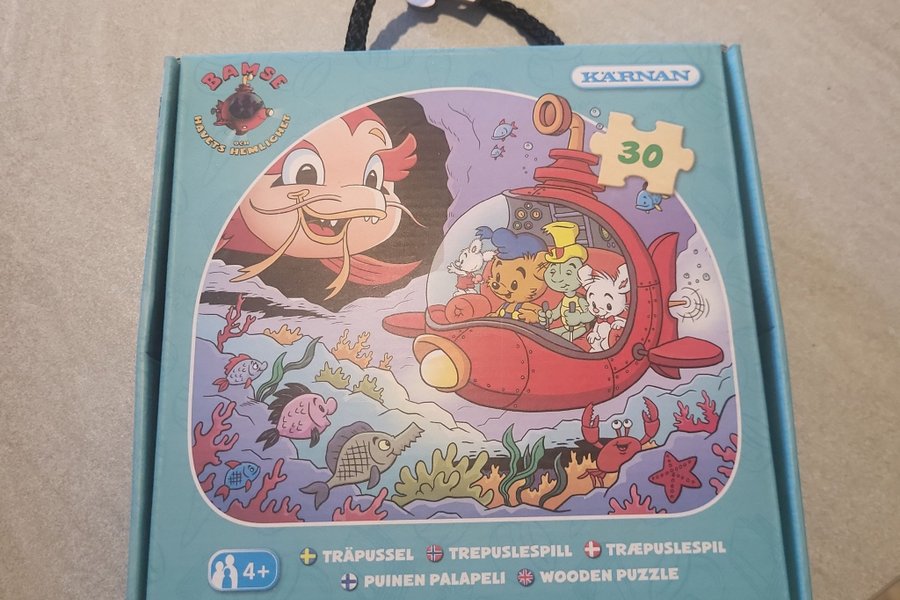 Träpussel med Bamse och hans vänner. Pusslet har 30 bitar och rekommenderas från 4 år.