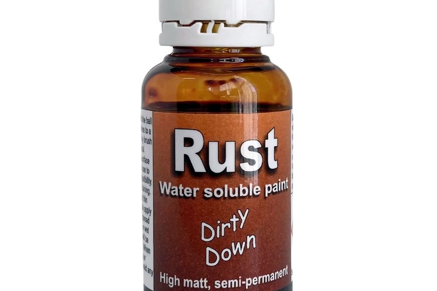Applicera rostfärg med pensel eller airbrush/spruta. Rosteffektfärg ser bäst ut när den appliceras på grova, strukturerade ytor. Vi brukade sälja den här produkten under varumärket "Modelmates" Rust Effect - det är samma produkt men nu med Dirty Down på etiketten.Skaka ordentligt för bäst effekt!