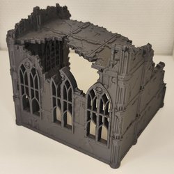 Warhammer spelterräng slottsruiner 2 våningar i plast mått ca 210 x 160 x 260 mm. 3D Printad i ljusgrå PLA+
