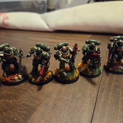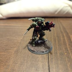 Warhammer 40k Dark Angels Redemptor Dreadnought. Målad och basad till en hygglig nivå. Kulsprutan och Plasmakanonen har magneter för att lätt bytas ut.