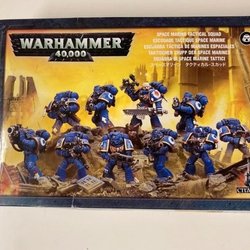 Warhammer 40,000 Space Marine Masters of the Chapter. Æsken indeholder metal komponenter til at samle figurerne. Baser medfølger.