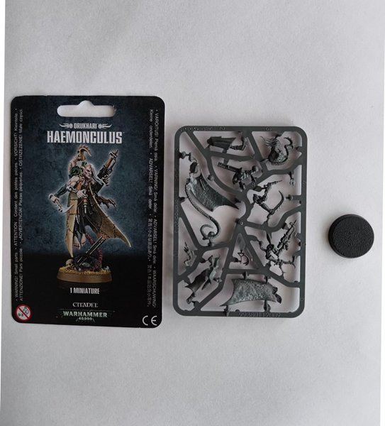 Denna vara inkluderar en omonterad Warhammer 40,000 Drukhari Haemonculus miniatyr på sprue, tillsammans med en bas.