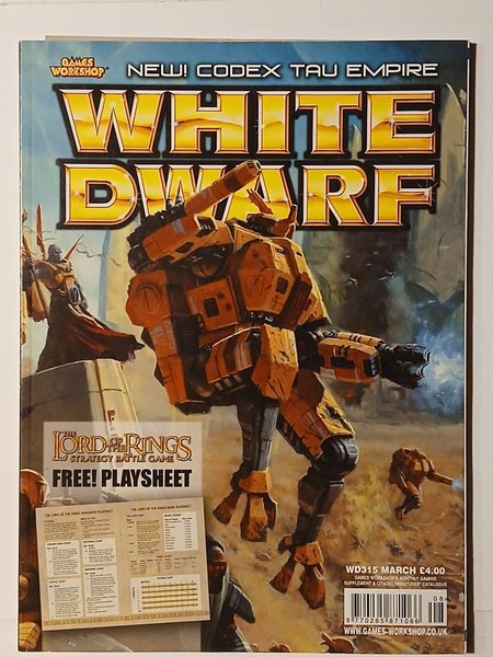 White Dwarf WD315 fra marts 2006. Indeholder "THE LORD OF THE RINGS STRATEGY BATTLE GAME FREE! PLAYSHEET". ISBN: 9770265871066.