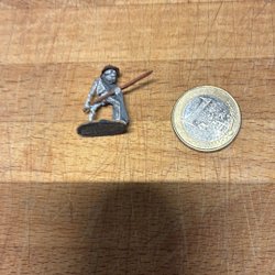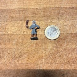 Figuren är målad med färg för fantasyfigurer för ca:35 år sedan. Minns inte om den är grundmålad men den är inte lackad. Myntet är för storleksreferens