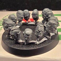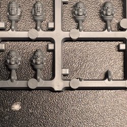 Denna uppsättning innehåller fem Space Marines Primaris Hellblasters. En av figurerna är delvis målad. De andra fyra figurerna är grundmålade i grått.