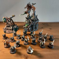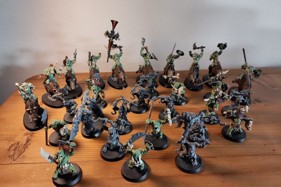 Detta paket innehåller 10 Savage Boarboys och 19 Savage Orruks och 1 Raan Orc. Vissa är målade, medan andra är omålade.
