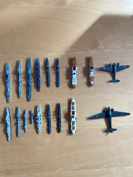Detta set innehåller 15 modellbåtar och 2 modellflygplan. Modellbåtarna varierar i storlek och design, med några som liknar jagare och andra som passagerarfartyg. Modellflygplanen inkluderar ett med franska markeringar och ett med tyska markeringar.
