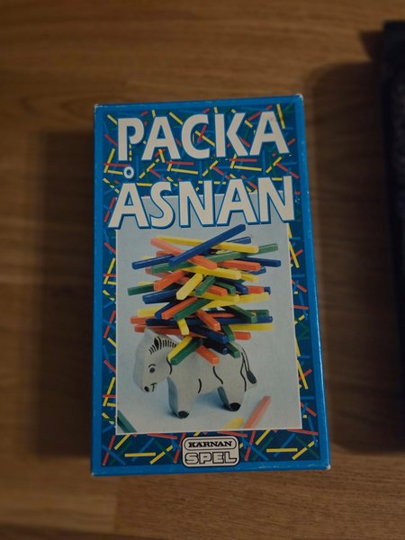 Balansspel från Kärnan. Spelet går ut på att placera pinnar på åsnans rygg utan att de faller.