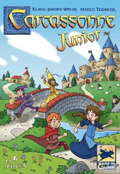 In Carcassonne Junior, a.k.a. My First Carcassonne, the players in turn draw a landscape tile and place it; unlike in normal Carcassonne, they always match. Amongst other features, the tiles show children in the player colors on the roads. Whenever a road is finished, every player places one of their meeples on each appropriate picture.