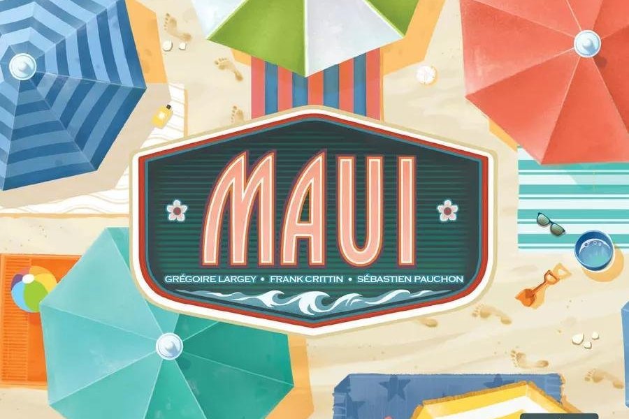 Locals and tourists in Maui are heading to the beach for a chance to find a nice spot to lay their towels and enjoy the amazing view of the Hawaiian ocean. In Maui, you want to find and place beachgoers on your sand so that they create pleasing patterns, while also placing their towels close to the ocean or under the shade of trees or umbrellas to earn the most points. However, getting too close to either of these areas is risky and might ruin their plans!In the game, you have your own beach board with room for 13 towels, the board has seven rows in which towels can be placed, and during set-up, you randomly place eight umbrellas in designated locations on your board. Each player places one random towel in the left most column of their board; each towel has three different patterns on it. Place six random tiles in the two rows of the market and one sand dollar in each row.On a turn, either take all the sand dollars from either row of the market or take a towel from the market; towels cost 0, 1, or 2 sand dollars, with those dollars being placed in the market row. When you place a towel, you must match at least one pattern with the towel that's rightmost on your beach board and you want to match as many patterns as possible. For each match you make, you advance that pattern's scoring marker 1-3 spaces on the score board; the closer to the ocean or the shade the more points you score, but if you place part of a towel outside the play area, you're penalized.If you cover an umbrella, you receive its bonus, whether that's advancing a pattern's scoring marker or receiving one of two types of pearls.When someone places a towel in the final column of their beach board, you complete the round, then see who's scored the most points from patterns, pearls, and leftover sand dollars, which are each worth a point. Instead of playing with umbrellas, you can flip your beach board to find a septet of sand crabs. Whenever you cover a crab with a towel, the crab crawls onto that portion of the towel, costing you both that pattern and a few points.