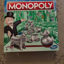 Sälj ett klassiskt Monopoly brädspel. Spelet är för 2-6 spelare och är lämpligt för åldrar 8+. Innehåller spelplan, 8 spelpjäser, 28 äganderättskort, 16 chans kort, 16 allmännings kort, 32 hus, 12 hotell, 2 tärningar och pengar.