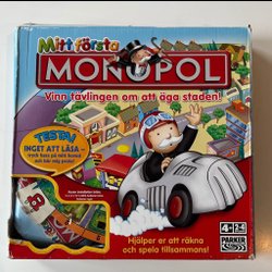 Klassiskt Monopol brädspel. Perfekt för spelkvällar med familj och vänner. Innehåller spelplan, tärningar, marker, hus, hotell, pengar och kort. Slitage på kartong.