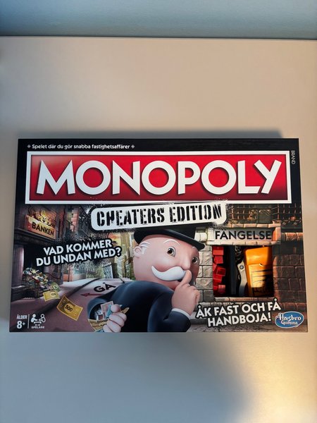 Säljer ett exemplar av Monopoly Cheaters Edition - Svensk version. Spelet innehåller spelbräde, tärningar, spelpjäser, kort och andra tillbehör som behövs för att spela. Perfekt för spelkvällen!