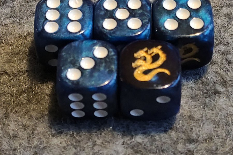 Tärningar, marmor blå 5stycken.