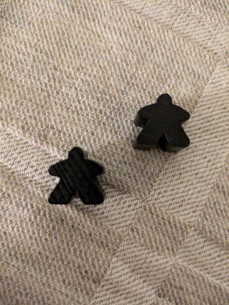 Säljer två svarta meeples till Carcassonne (original).