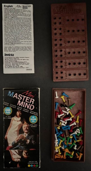 Komplett och i mycket gott skick frånsett att någon har fyllt i orden Master Mind med blått och rosa på förpackningens utsida
