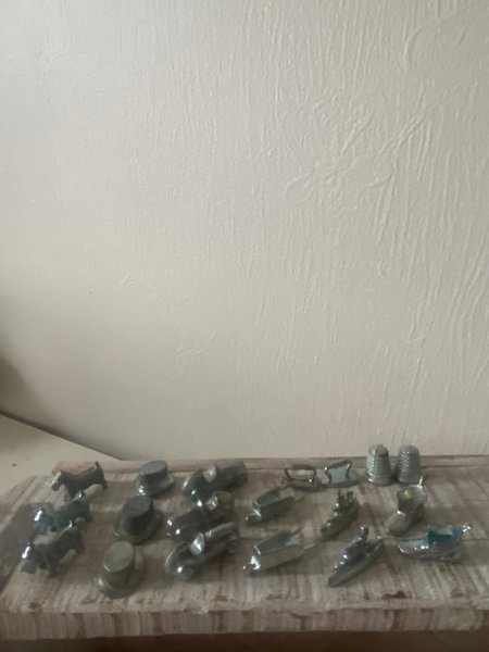 19 spelpjäser för Monopol. Innehåller olika figurer som hattar, bilar, hundar och andra klassiska pjäser.