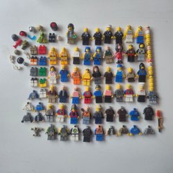 Schackpjäser i trä. Varierande skick. Böjda pjäser och skada på en pjäs.