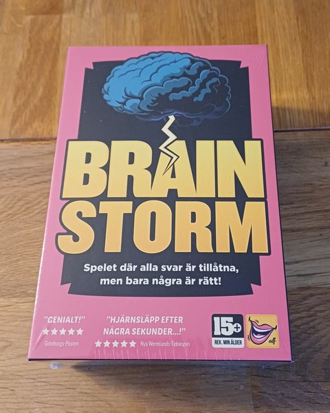 Helt nytt!! Brainstorm är ett sällskapsspel där alla svar är tillåtna, men bara några är rätt. Rekommenderad ålder är 15+.