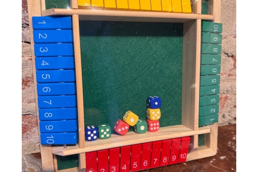Shut the Box är ett sällskapsspel där spelare slår tärningar för att stänga lådor med nummer.