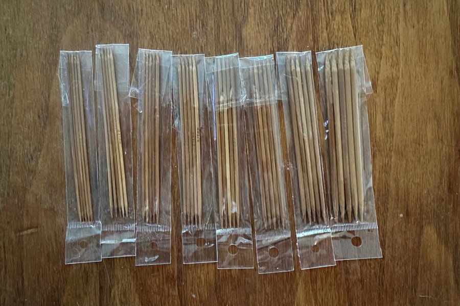 Helt nya strumpstickor i bambu. Köpta på Sy- och hantverksfestivalen.