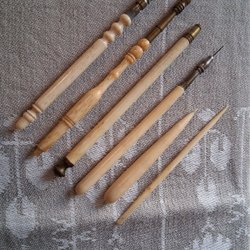 Virknålarna har trähandtag inkluderar ett etui för förvaring.