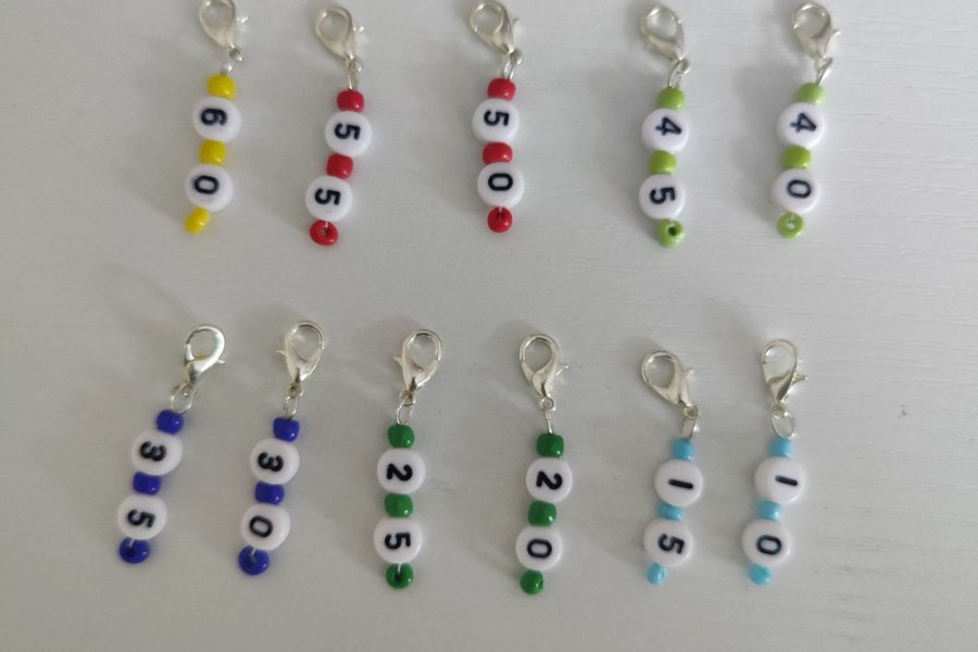 Behöver du använda virknålen till ett annat projekt innna du är klar så kan du markera vilken storlek på virknål det vilande arbetet har.