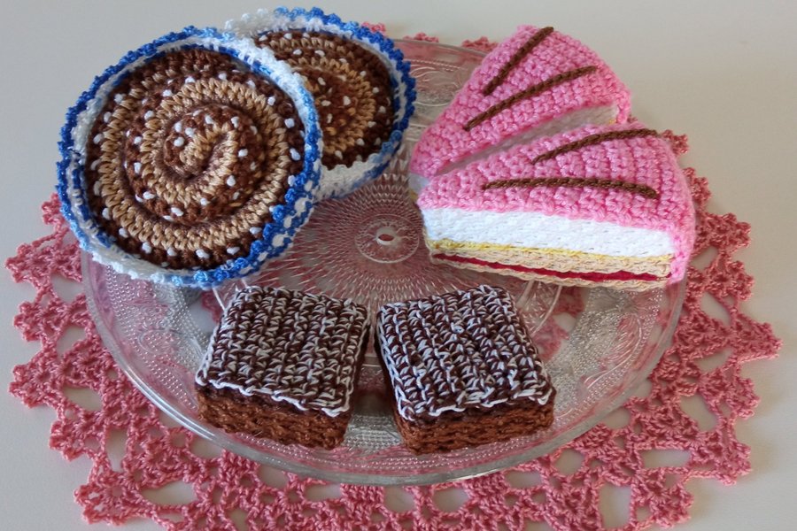 Kakorna är virkade i kabeltvinnat bomullsgarn.