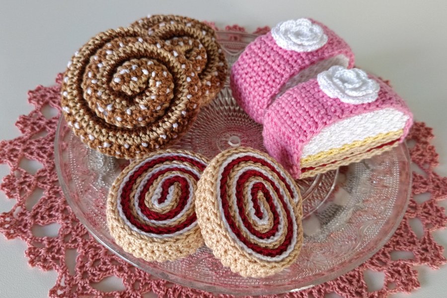 Kakorna är virkade i kabeltvinnat bomullsgarn.