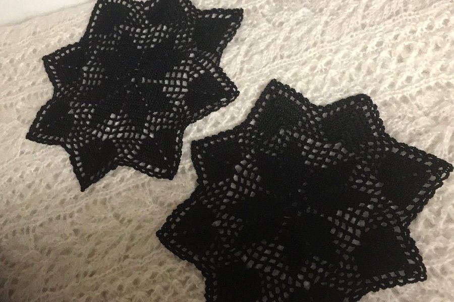 Två virkade stjärnor