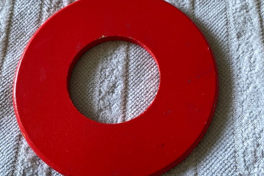 En röd träring. Perfekt för pyssel och dekoration.