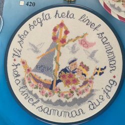 Brodera tavla på Aida väv storlek på ramen är 25,5 cm - 20,5 cm , broderigarn medföljer. Samfraktar. Det kommer ett automatiskt meddelande från Tradera. Är du inte nöjd så ta kontakt.