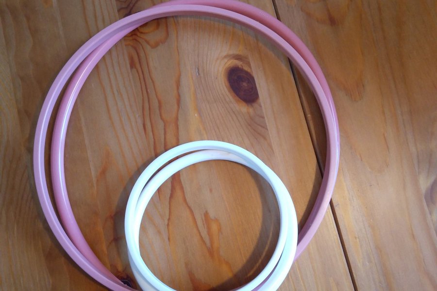 2 st flexiramar med upphängning, rosa mått ca 26 x 26 cm och vit ca 13 x 13 cm.
