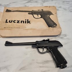 Detta är ett Slavia modell 624 luftgevär som kommer med sin originalförpackning. Vapnet har en trästock och en metallpipa, vilket ger en klassisk och tidlös design. Perfekt för samlare eller som ett intressant tillskott till din utrustning.