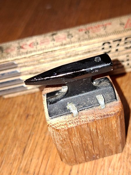 En liten miniatyrstäd med träfot. Perfekt för samlaren eller den som gillar små verktyg.