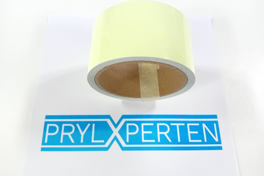 Fotoluminiscent tejp bestående av en PET-film belagd med akrylatlim. Fosforescerande tejp har hög ljusstyrka i mörkret, även efter kort ljusutstrålning med en ljuskälla.