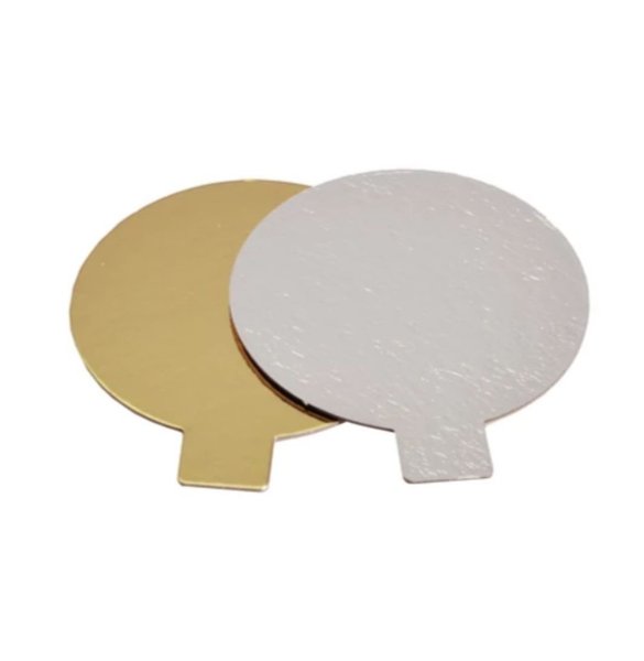 En bakelsebricka med guld på ena sidan och silver på den andra.