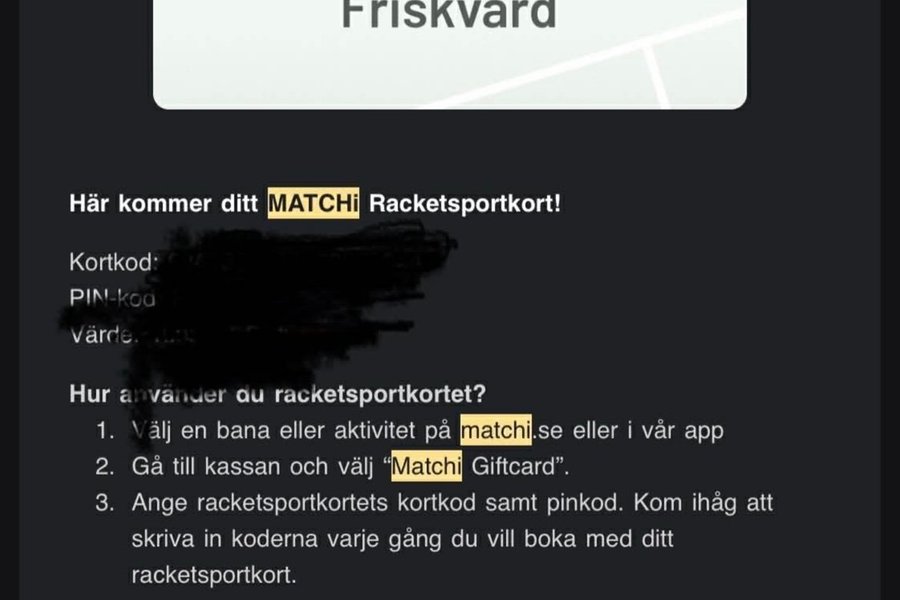 Detta Matchi Racketsportkort kan användas för att boka banor eller aktiviteter på matchi.se eller via Matchis app.