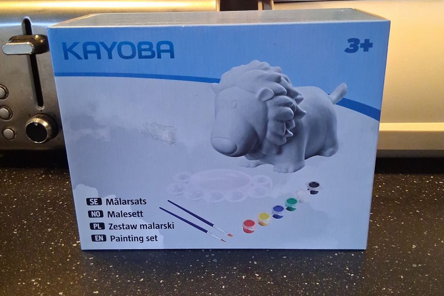 Målarsats med ett lejon samt sex färger. Setet innehåller en figur, penslar och färger.