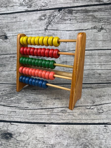 Klassisk abakus i trä med färgglada kulor. Perfekt för att lära barn grundläggande matematik.